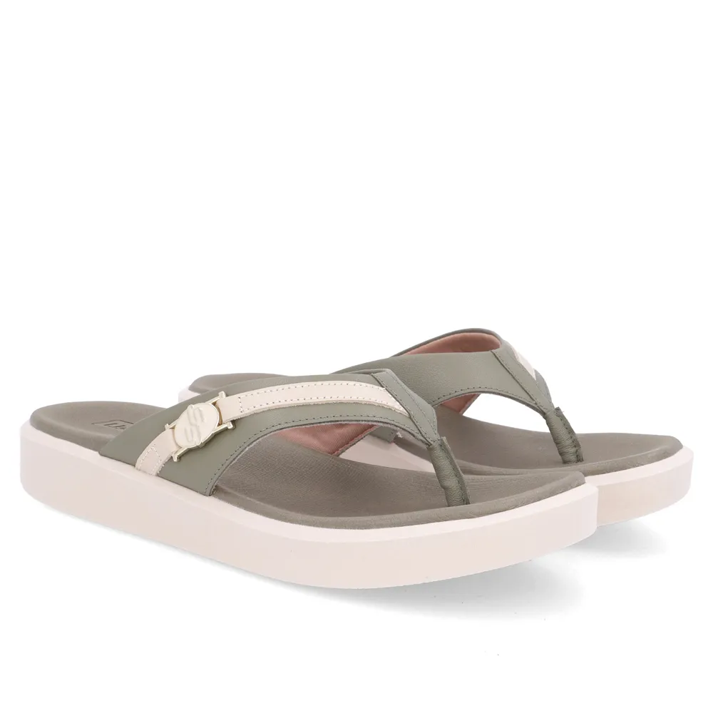 Chinelo Salto Plataforma Couro Verde Detalhe Monograma R$ 129,99