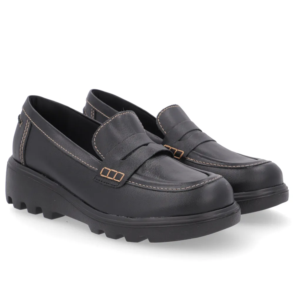 Loafer Preto Salto Plataforma Couro R$ 229,99