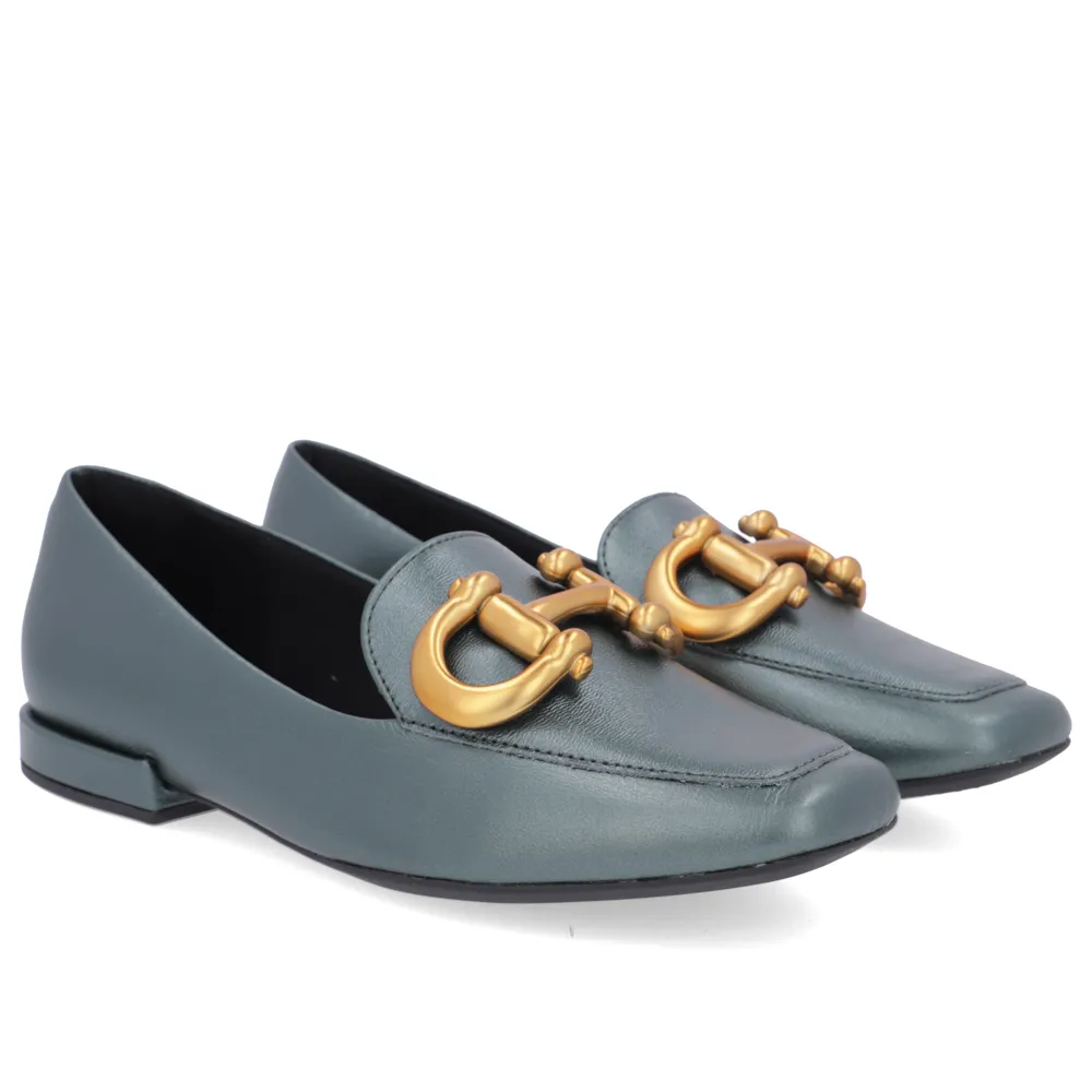 Loafer Verde Couro Básico Enfeite Escovado R$ 209,99