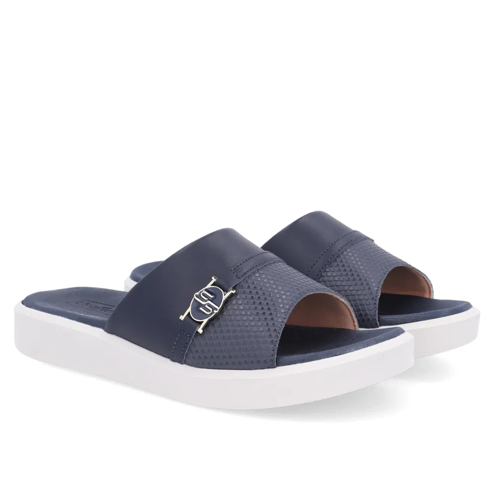 Tamanco Plataforma Couro Azul Enfeite R$ 129,99