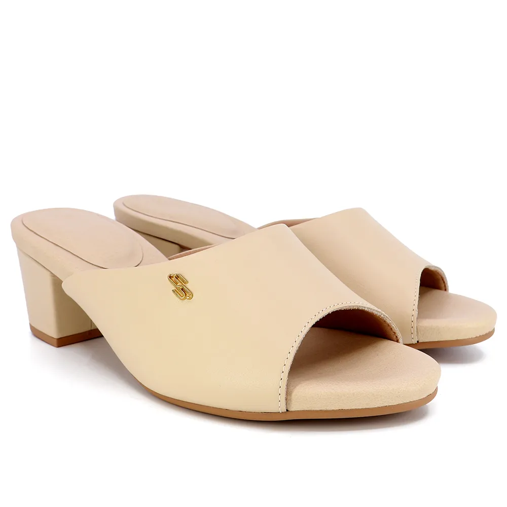 Tamanco Salto Bloco Couro Bege Básico R$ 159,99