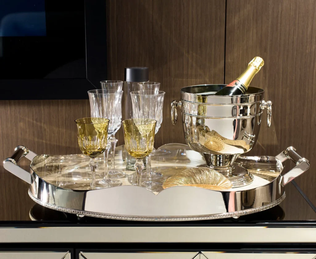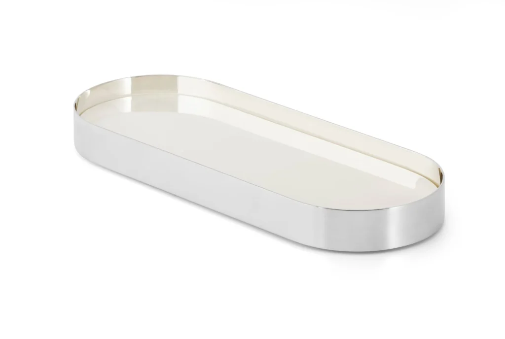 Bandeja Oblonga Volupté Prata C/ Resina Branca R$ 1.808,66