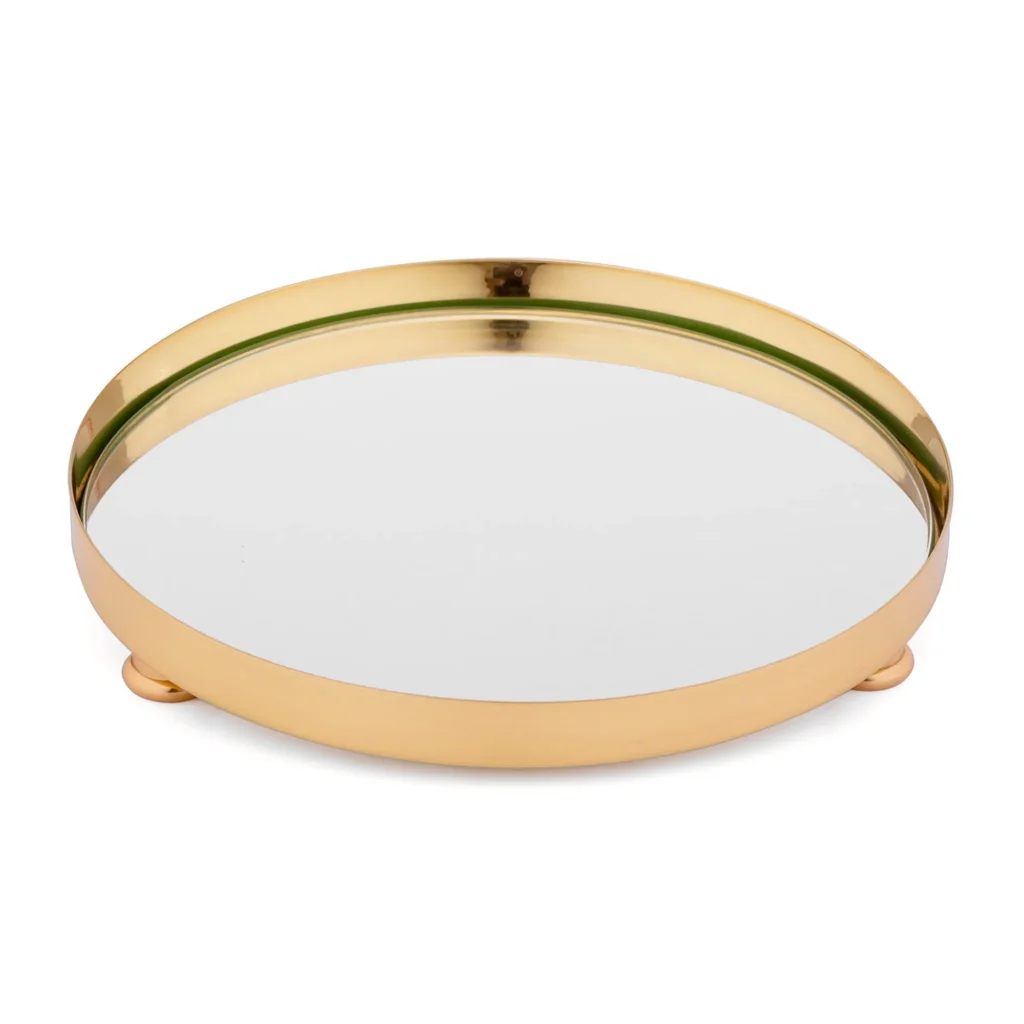 Bandeja Redonda Dourada C/ Fundo Espelho P R$ 717,36