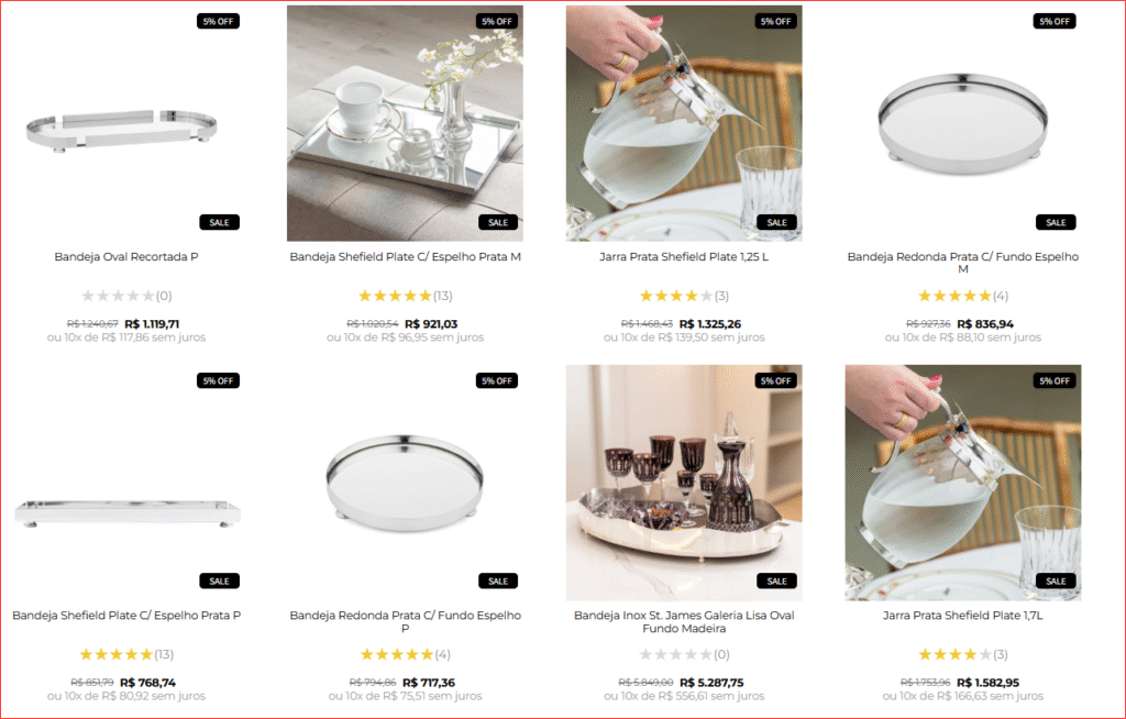 Bandeja Shefield Plate C/ Espelho Dourada P ……….. R$ 768,74